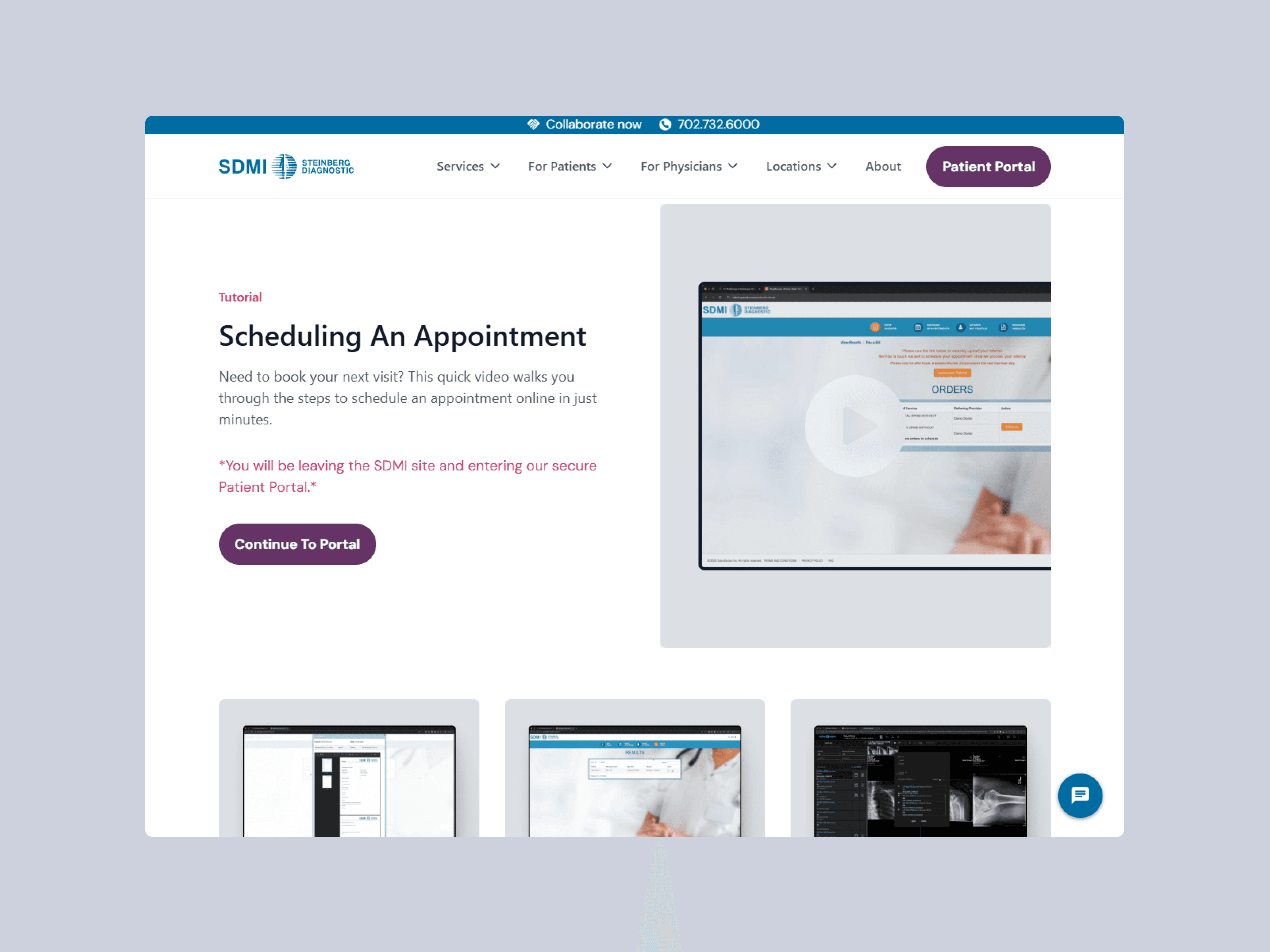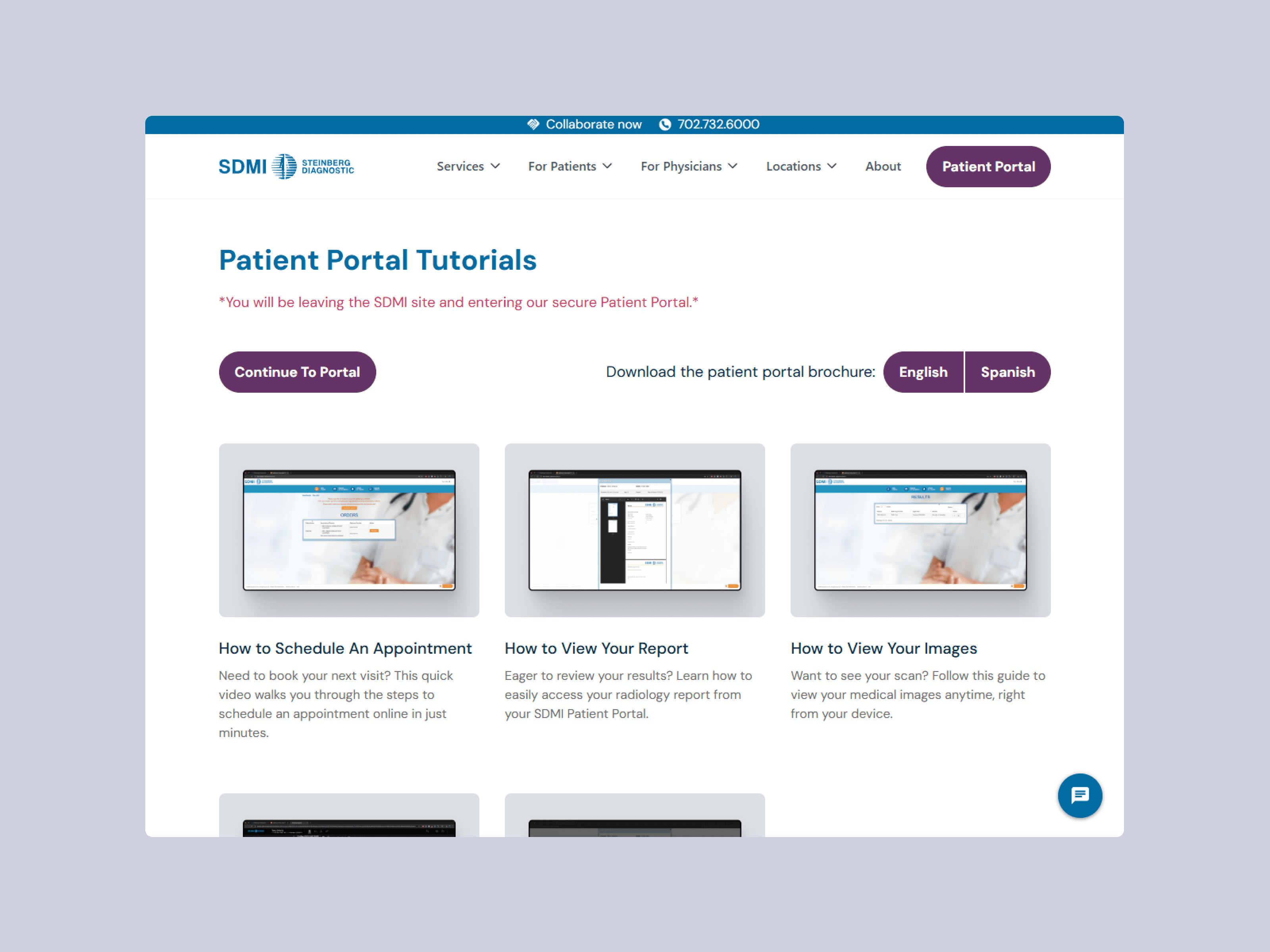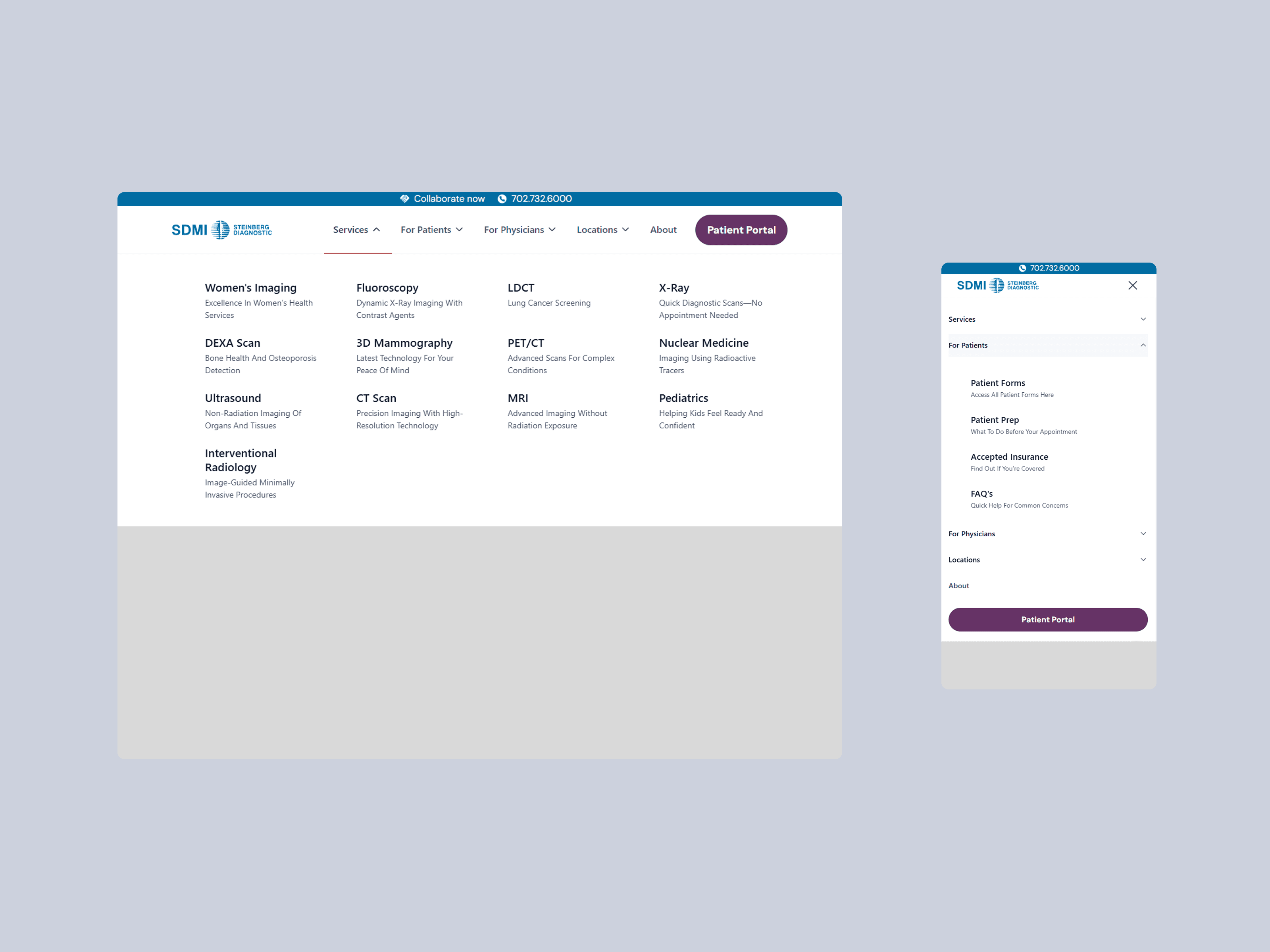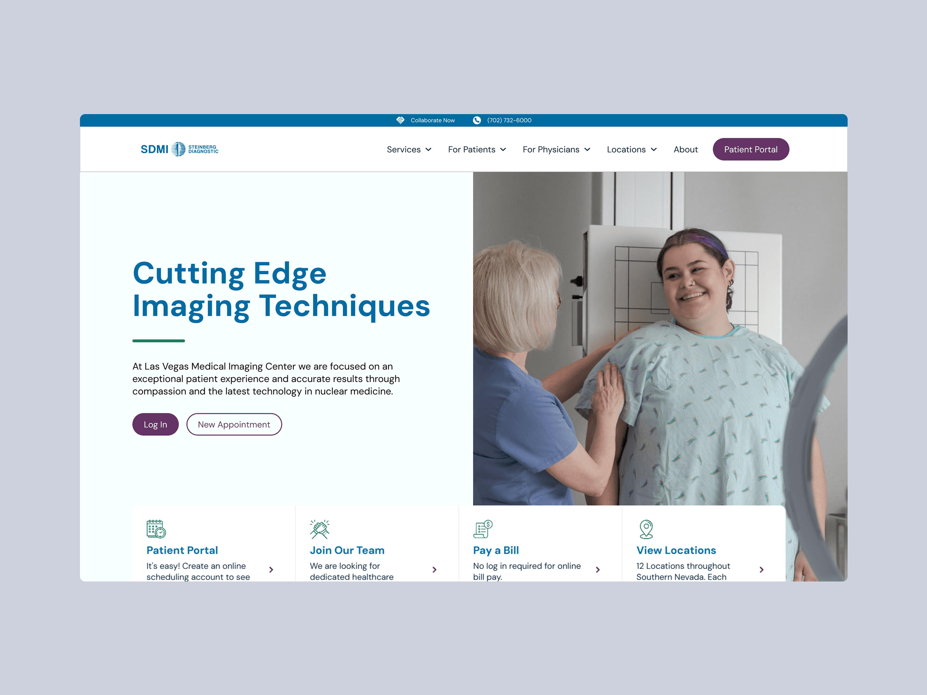 SDMI is a medical imaging center based in Las Vegas. Their website serves as a central hub where patients learn about services, schedule appointments, and access a secure portal to view and manage their results. Physicians also use the site to access resources and refer patients.